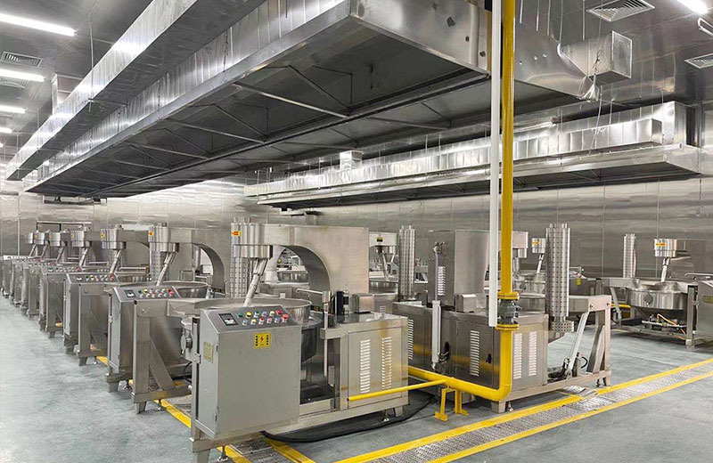 全自動(dòng)行星攪拌炒鍋是預(yù)制菜行業(yè)中不可缺少的一款設(shè)備,它廣泛應(yīng)用于預(yù)制菜加工、酒店食堂炒菜、火鍋底料、餡料炒制、油炸食品、熬糖化糖、鹵煮肉食等食品中,真正實(shí)現(xiàn)了炒、煮、熬、炸一機(jī)多用。